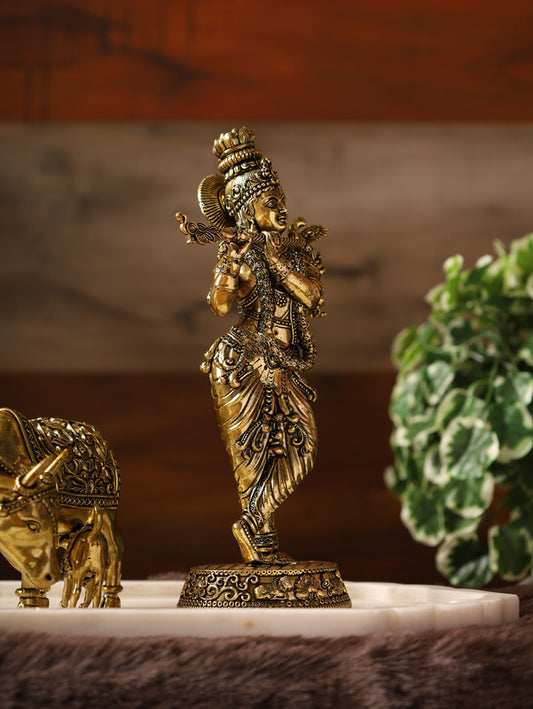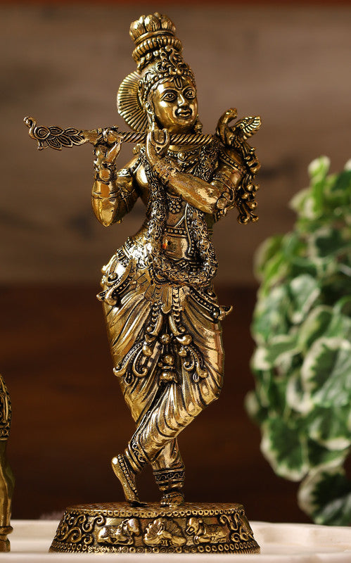 Super Fine Brass Krishna Standing On Pedestal 8''