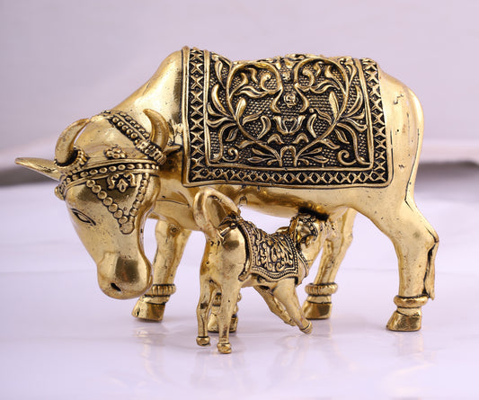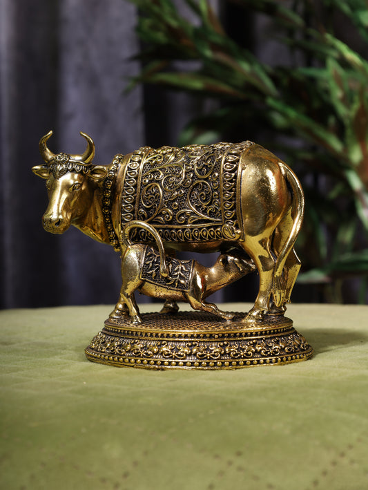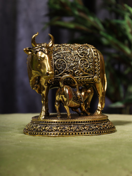 SuperFine Brass Kamdhenu Calf On Pedestal 4"
