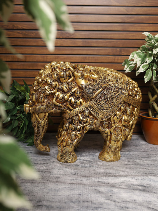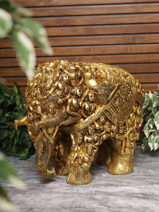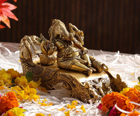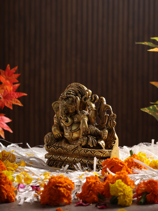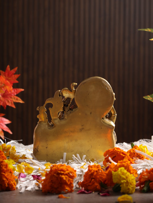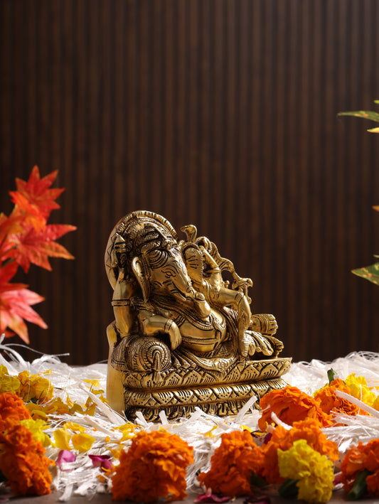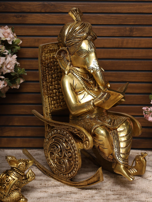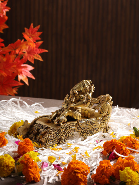 Brass Reclining Ganesh Ji Idol Relaxing on Aasan8.5''