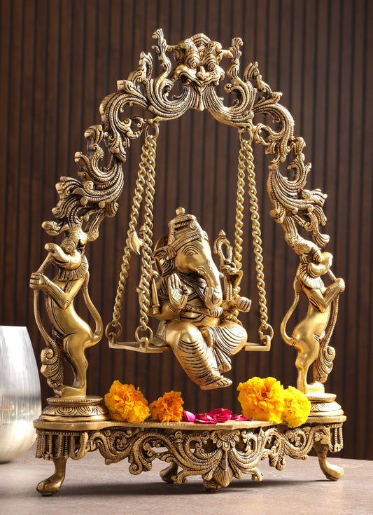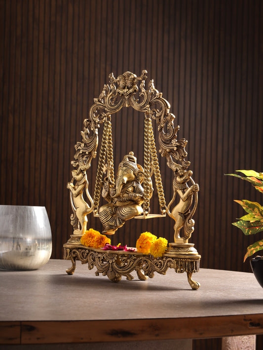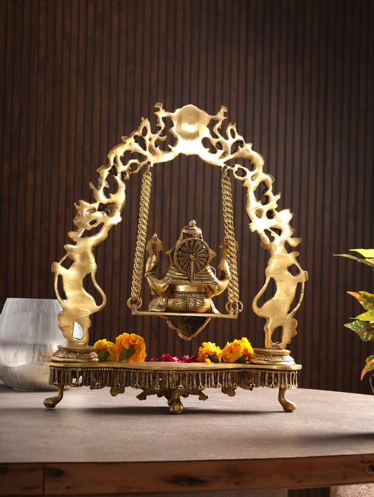 Brass Swinging Ganesha Idol on Decorative Jhula
