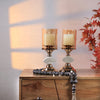 Add a regal touch to your interiors with the Royal Crest Candle Holder set. Featuring a gleaming metallic base with elegant fan-shaped detailing, this duo combines classic artistry with modern sophistication. The amber glass cover casts a soft, ambient glow, creating a cozy and inviting atmosphere. Perfect for living rooms, dining spaces, or festive décor, these candle holders exude timeless charm and luxury.