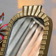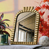 This elegant arched mirror features a bold, textured frame finished in antique gold. The ribbed detailing adds depth and character, giving it a classic yet contemporary look. Its compact size makes it ideal for console tables, vanities, or accent walls. A perfect blend of sophistication and charm to elevate any modern or vintage-inspired space.