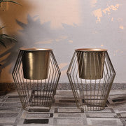 Elevate your interiors with the Luxe Cage Metal Planter Set, featuring striking geometric wireframe stands in a chic metallic finish. The sleek gold planters exude modern sophistication, while the open base design adds an airy, architectural touch. Perfect for both indoor and outdoor spaces, these planters effortlessly blend style and functionality. Ideal for showcasing lush greens or vibrant florals.