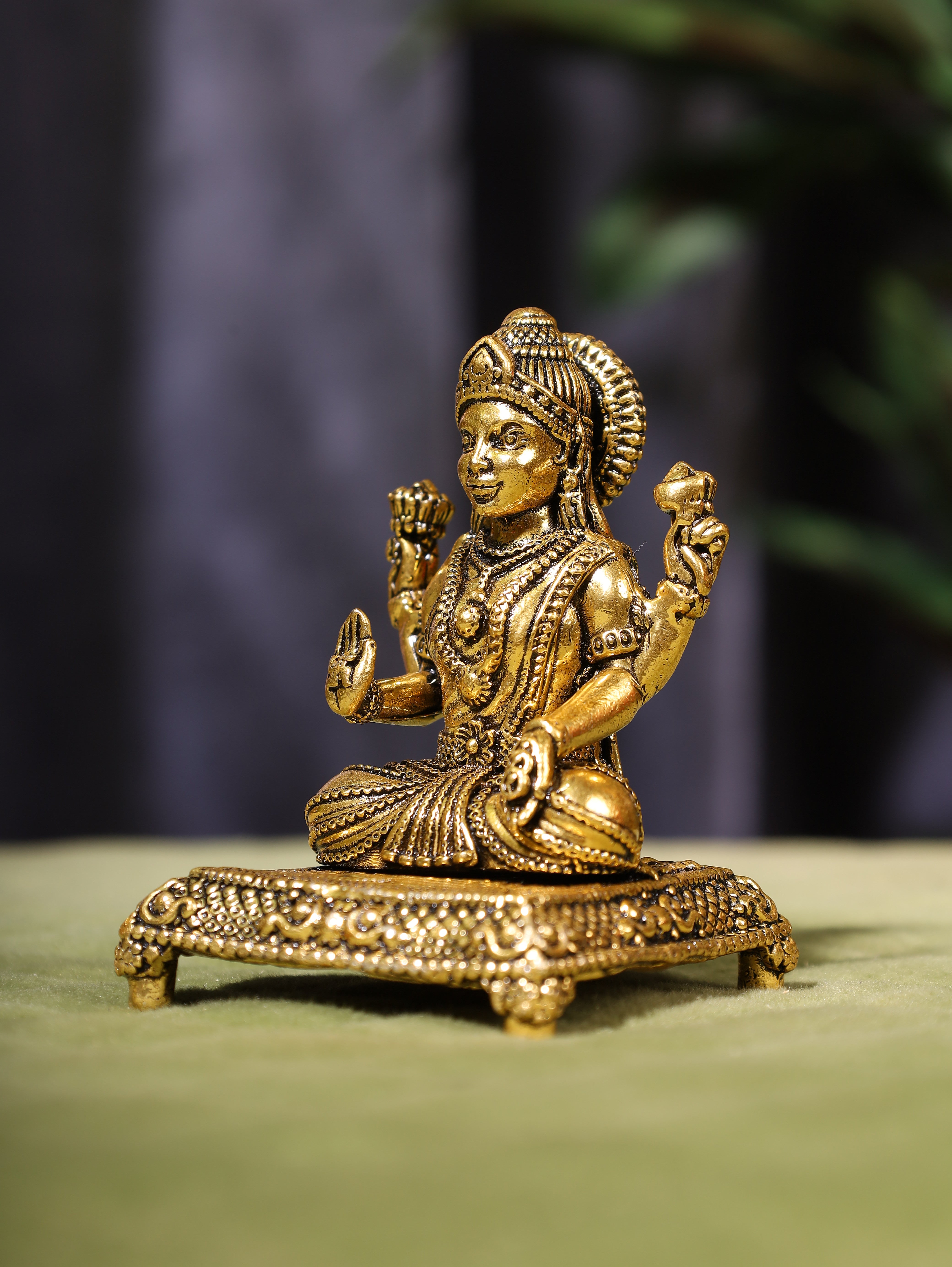 This beautifully crafted brass idol of Goddess Lakshmi exudes divine charm and grace. Seated in a traditional posture, she holds the lotus and gestures blessings, symbolizing wealth, prosperity, and well-being. Intricate detailing on her attire and ornaments enhances the statue’s spiritual allure. Perfect for home temples, festive décor, or as a thoughtful gift.