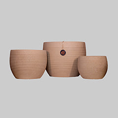 These elegant round planters feature a smooth, ribbed texture and a soft beige tone that complements any décor style. Their simple yet refined design adds a touch of sophistication to both indoor and outdoor spaces. Perfect for medium to large plants, they blend functionality with modern aesthetics. Durable and stylish, they make an excellent choice for home or garden use.