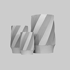These stylish planters feature a bold diagonal stripe design in soft grey and white tones, creating a modern and dynamic look. Their geometric pattern adds visual interest, making them a perfect accent for contemporary interiors. Crafted with precision, they blend functionality with artistic flair. Ideal for indoor plants or decorative arrangements, these planters bring a sophisticated edge to any space.