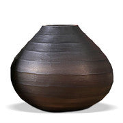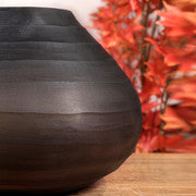 This elegant black matte vase features a smooth, handcrafted finish with subtle layered texture that enhances its minimalist design. Its wide, rounded body and narrow opening create a balanced, sculptural form perfect for modern interiors. The deep charcoal tones add sophistication and depth to any décor. Ideal as a standalone statement piece or paired with dried florals for a contemporary touch.