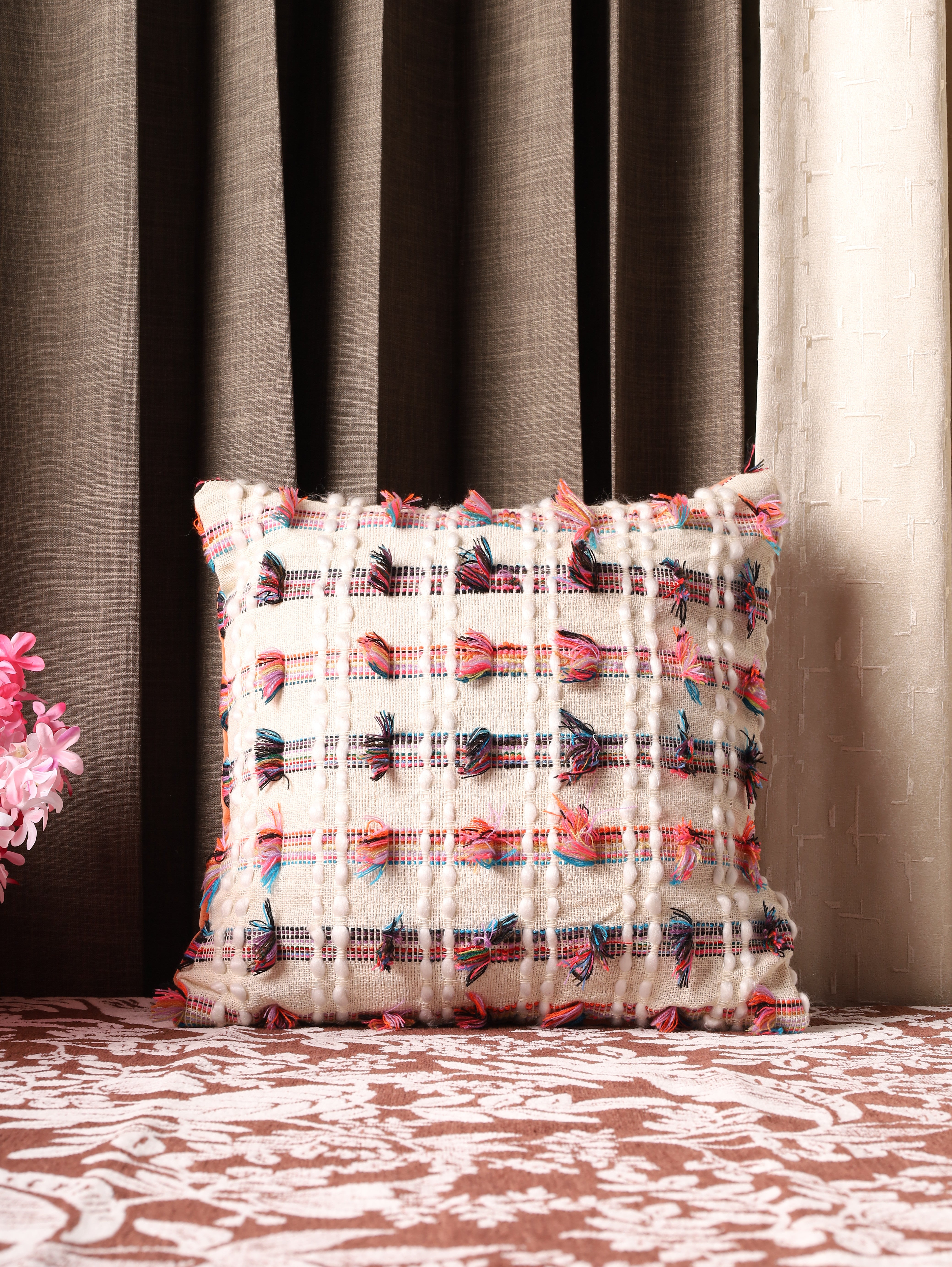The Bohemian Threads Accent Cushion Cover by Artiq Casa adds a vibrant, textured flair to any space. Featuring multicolor tassels and a boho-inspired design, it’s perfect for sofas, chairs, or layered cushion setups. Made from high-quality fabric, this cushion cover is dry clean only. Ideal for those looking to add a cozy, eclectic touch to their home décor.