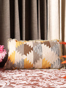 Introduce a vibrant charm to your space with the Boho Peaks Cushion Cover. Showcasing an eye-catching zigzag pattern in earthy tones of yellow, white, and brown, this piece brings a cozy, eclectic feel to any room. Its textured weave and tasseled edges add a playful, artisanal touch. Ideal for bohemian or rustic-inspired interiors.