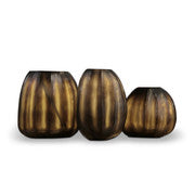 This elegant vase features a smoky amber hue with a rich, translucent finish that beautifully catches the light. Its rounded form and faceted surface give it a contemporary yet handcrafted appeal. The subtle gradient tones of brown and gold add depth and warmth to any décor. Perfect as a statement piece or for displaying fresh or dried florals.