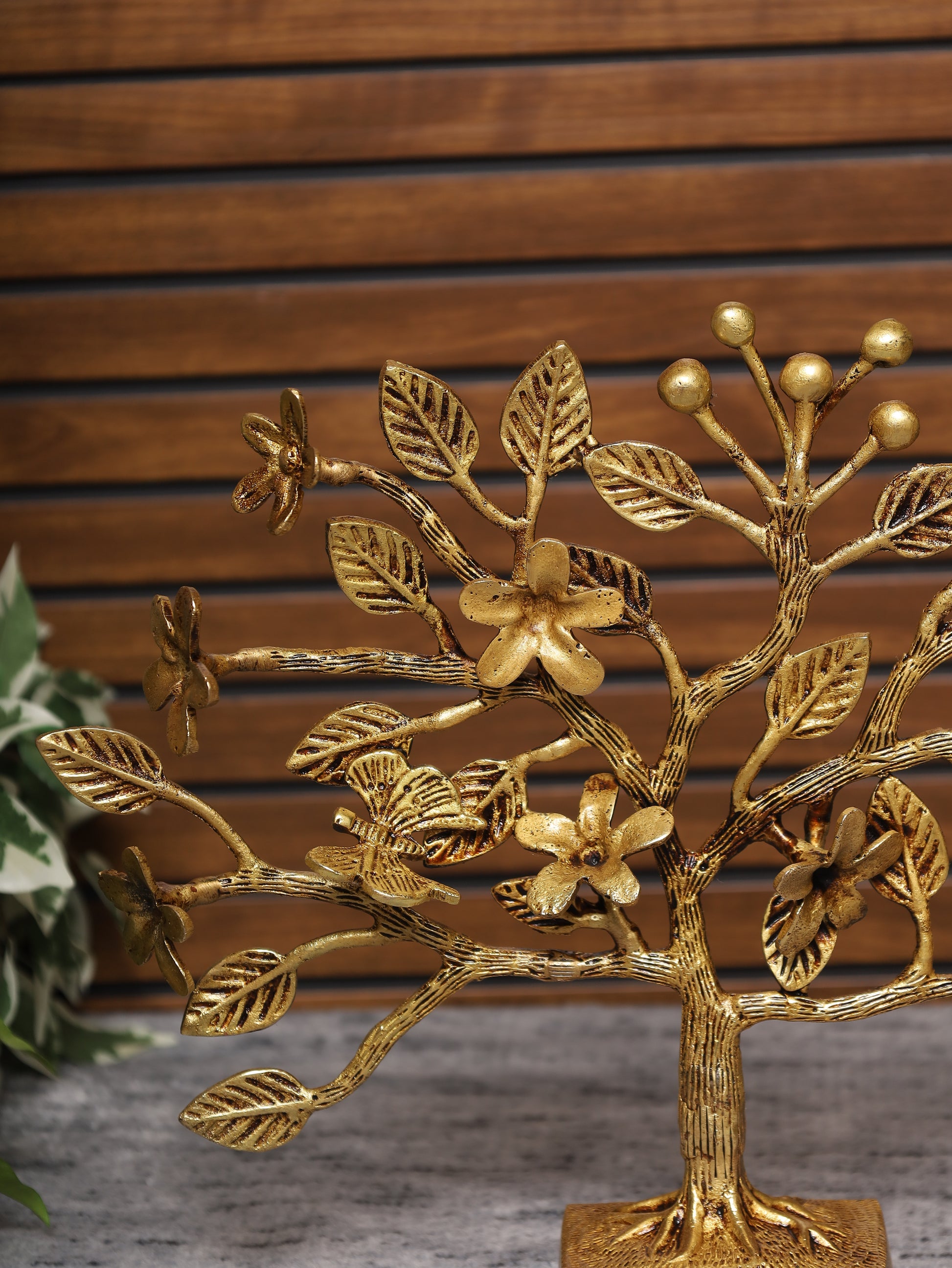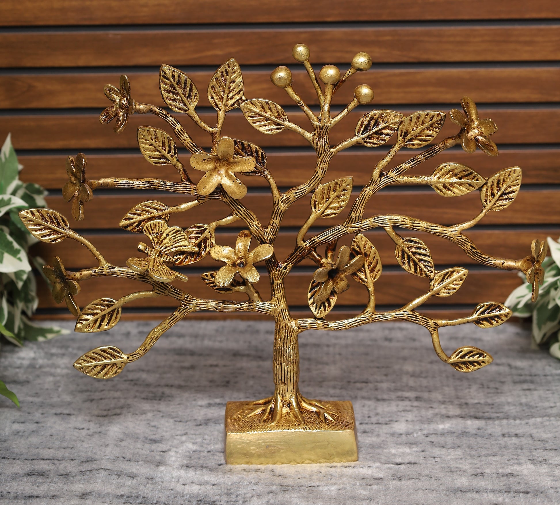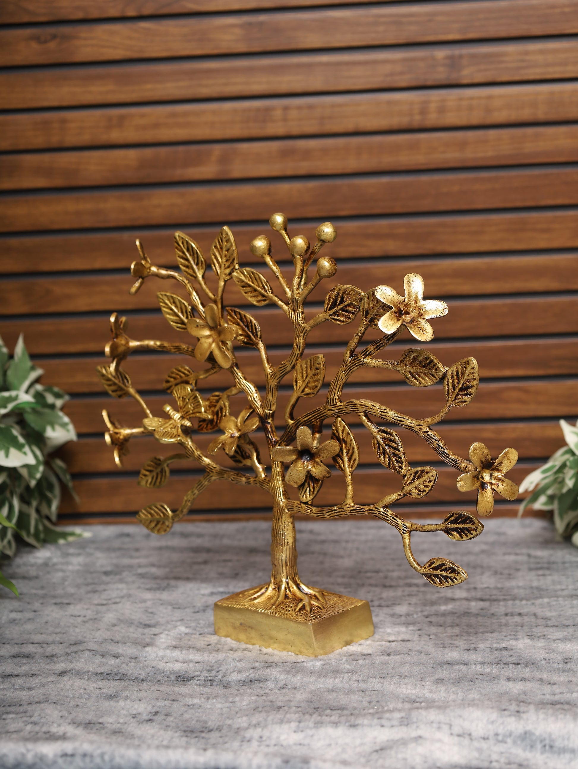 This handcrafted brass floral tree sculpture radiates elegance and charm with its blooming flowers and delicately etched leaves. The golden finish enhances its artistic appeal, making it a perfect centerpiece for living rooms, offices, or meditation spaces. It symbolizes growth, harmony, and natural beauty—ideal for adding a touch of grace to any décor.