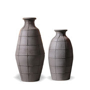 These tall ceramic vases feature a minimalist grid pattern that adds modern structure and visual interest. The matte grey finish gives them a sleek and contemporary appeal, perfect for modern or industrial interiors. Their clean lines and subtle texture make them versatile accent pieces for any space. Ideal for displaying dried branches or as standalone décor on shelves or consoles.