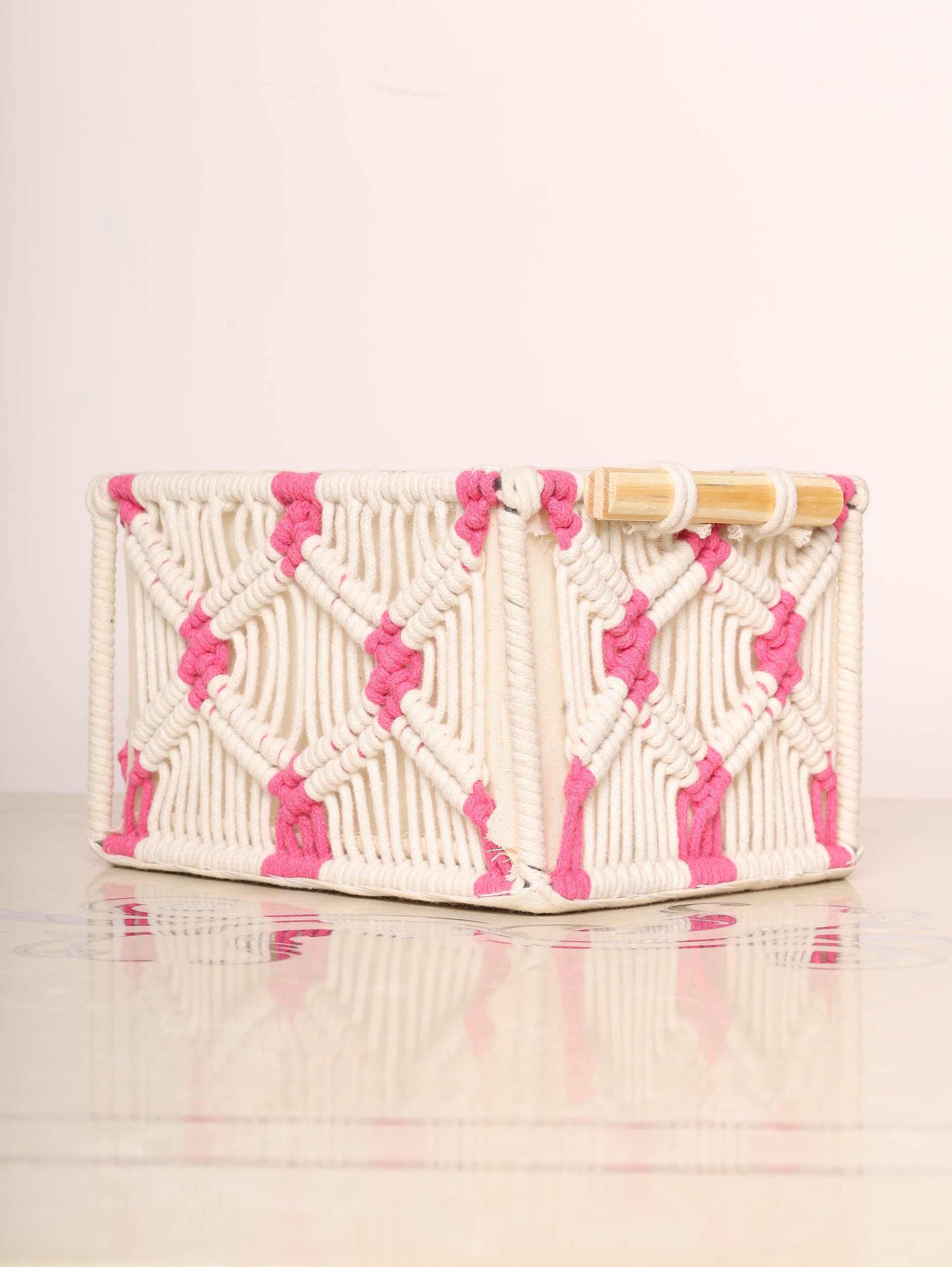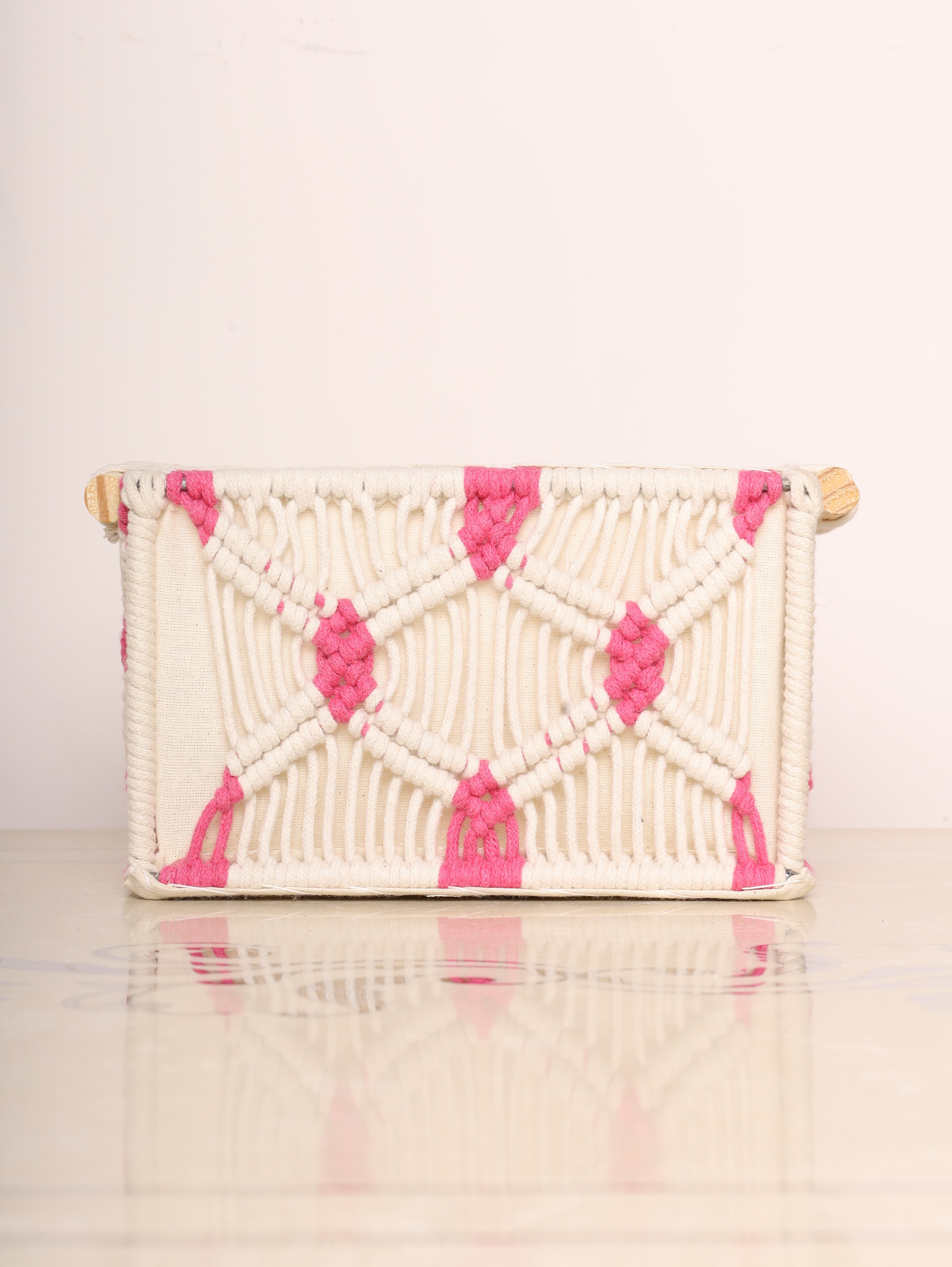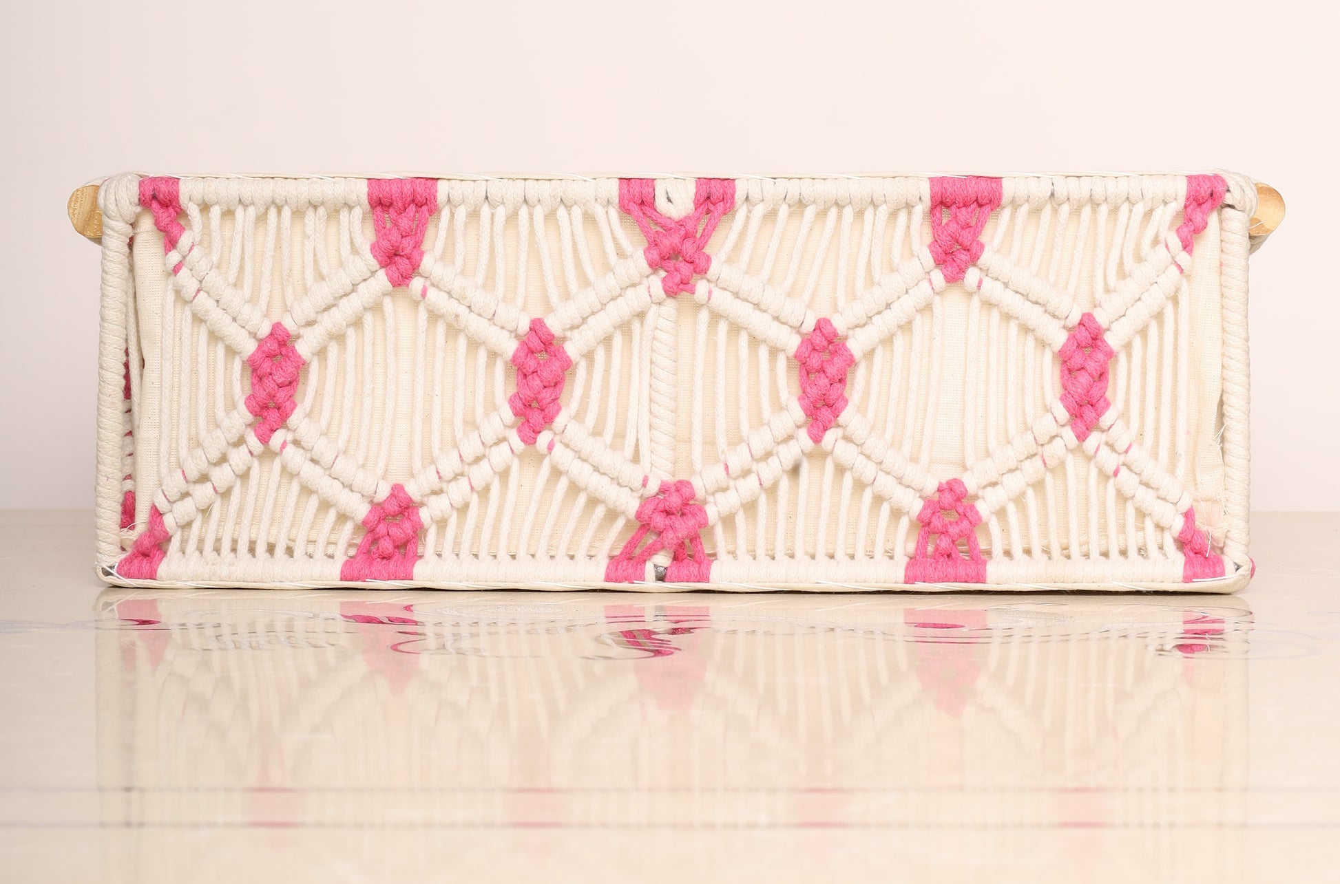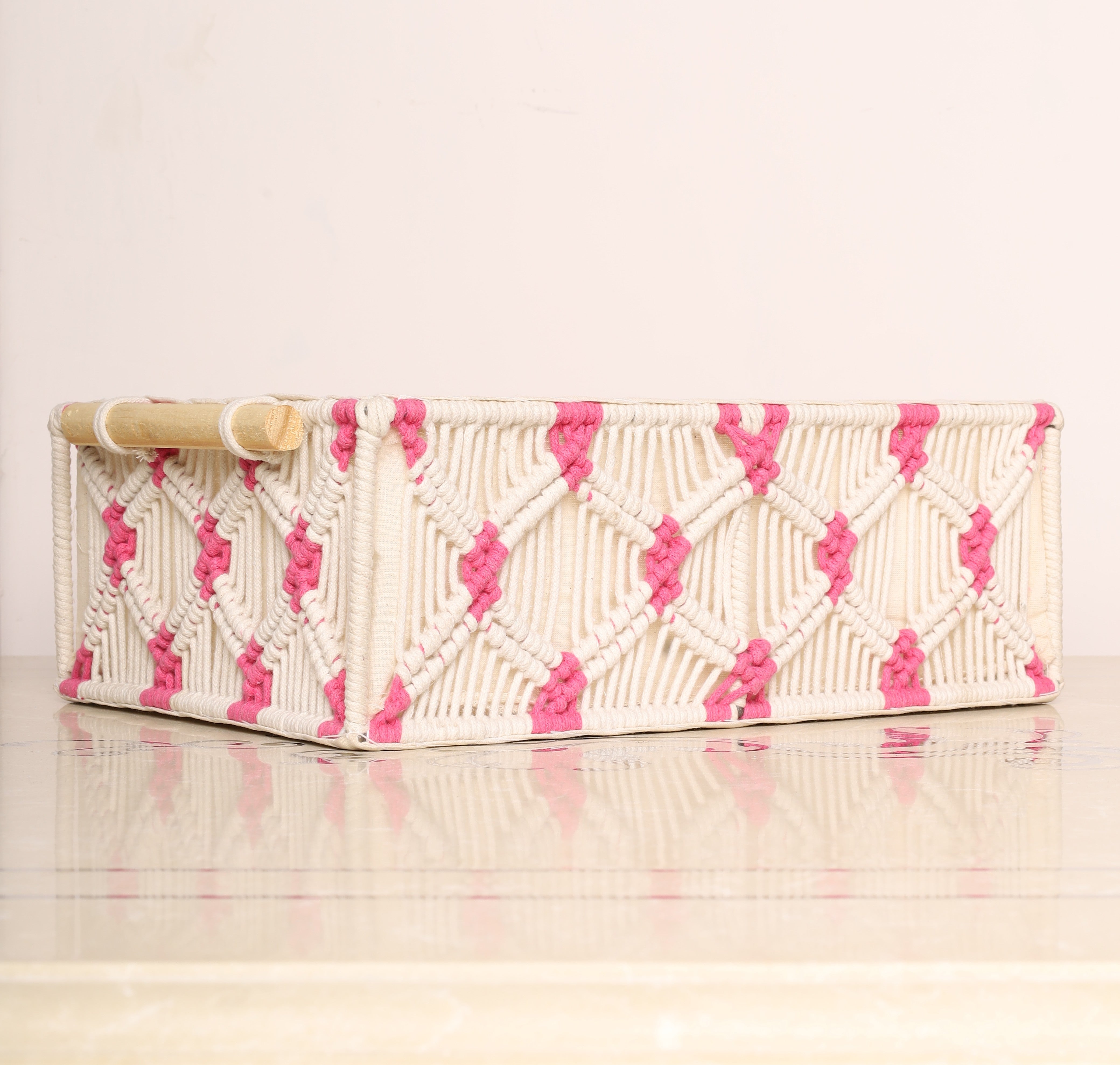 Brighten up your space with this charming set of handwoven macrame storage baskets. Adorned with red and cream detailing, these baskets offer a stylish yet functional solution for organizing your essentials. Each piece is crafted from durable materials with a soft inner lining for added protection. Perfect for use in living rooms, bathrooms, or kids’ rooms. Set includes three different sizes to suit your storage needs.