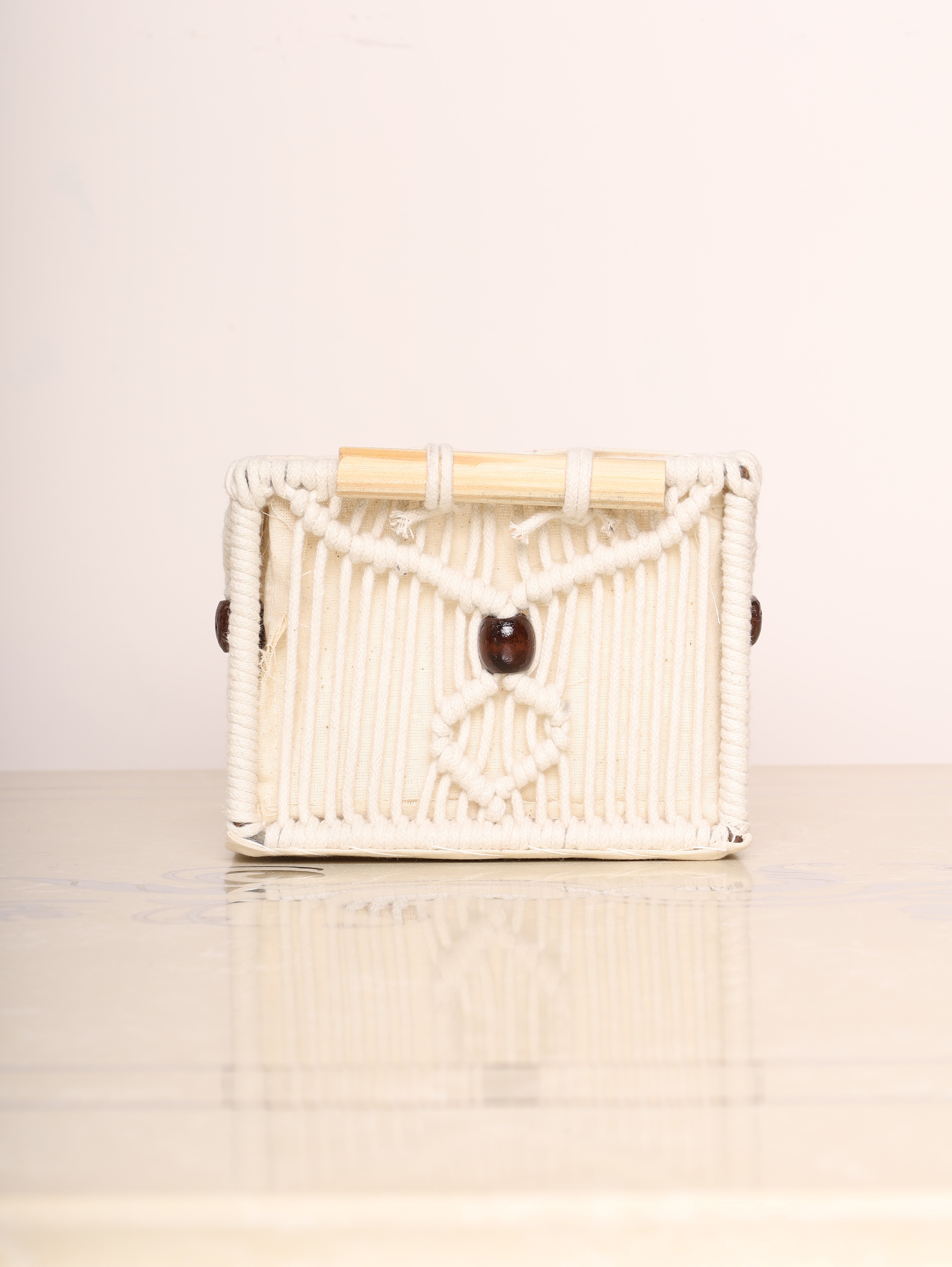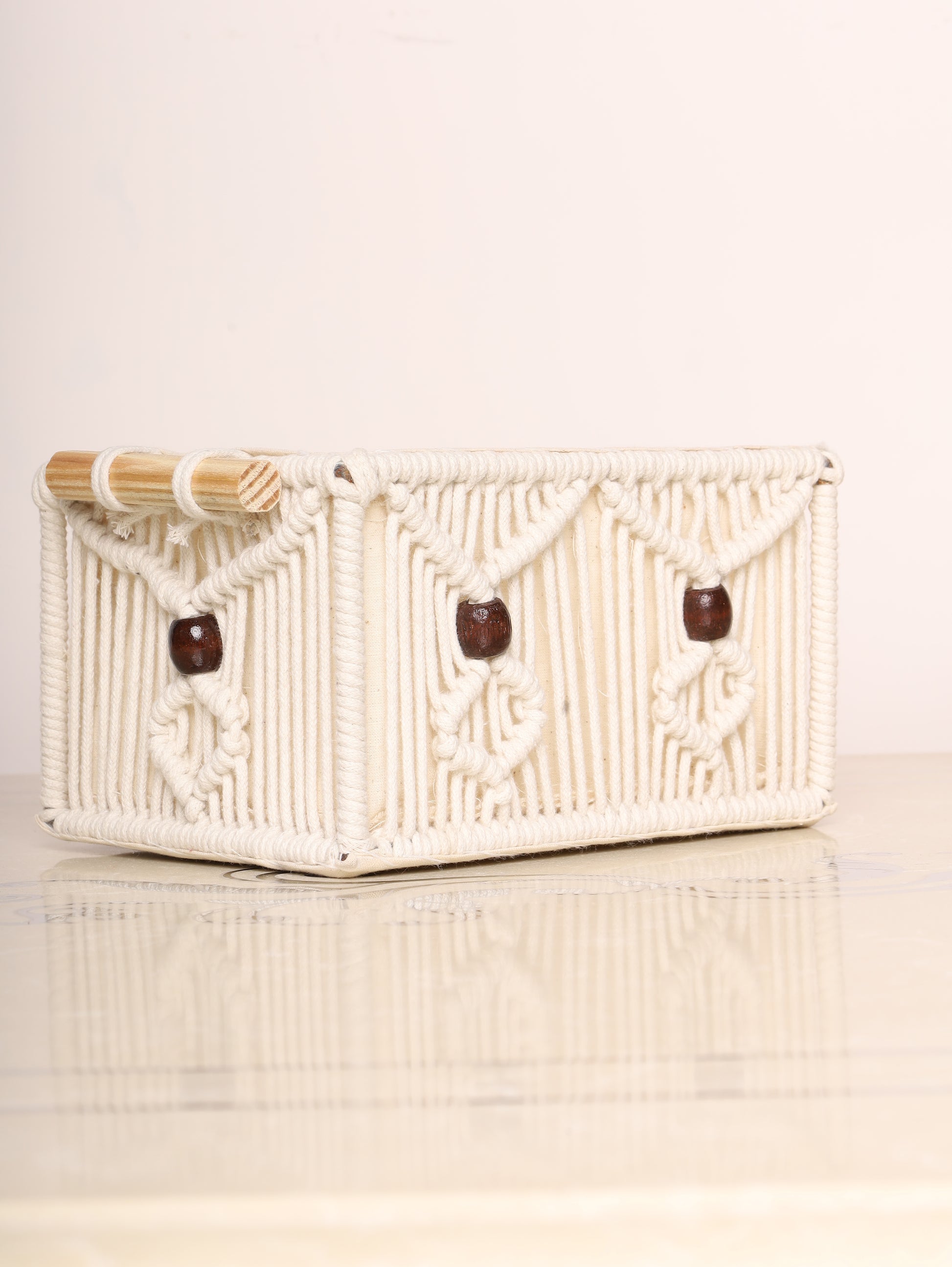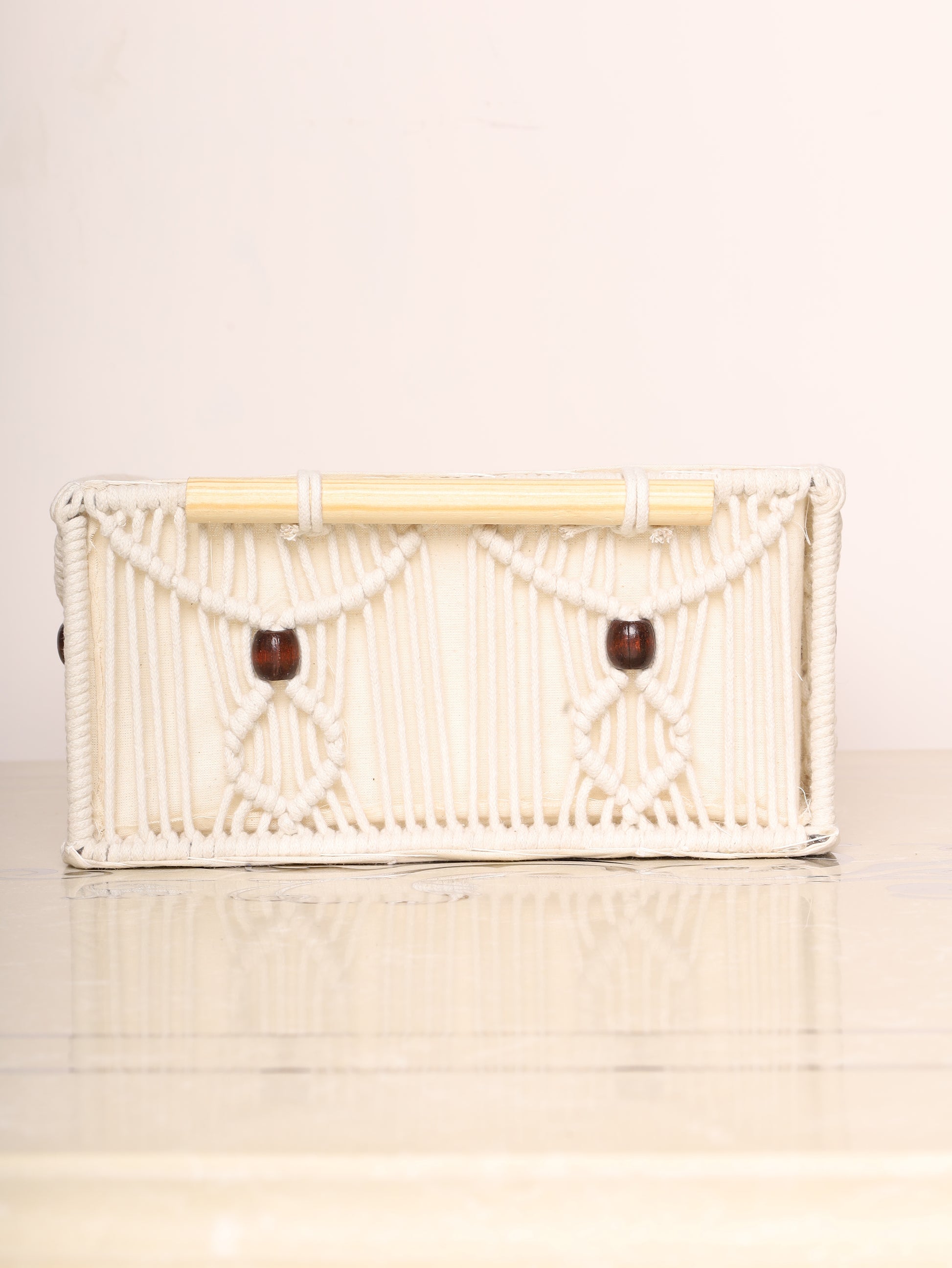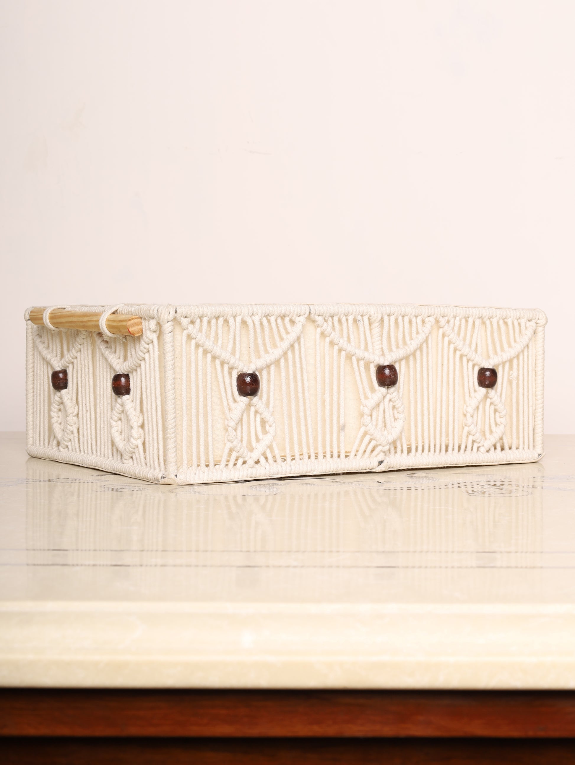 Add a touch of rustic charm to your space with these handcrafted macrame storage baskets. Featuring intricate knots and soft cotton lining, these baskets are ideal for organizing essentials while enhancing your décor. The neutral tones with subtle yellow accents complement any interior. Perfect for wardrobes, bathrooms, or living rooms.