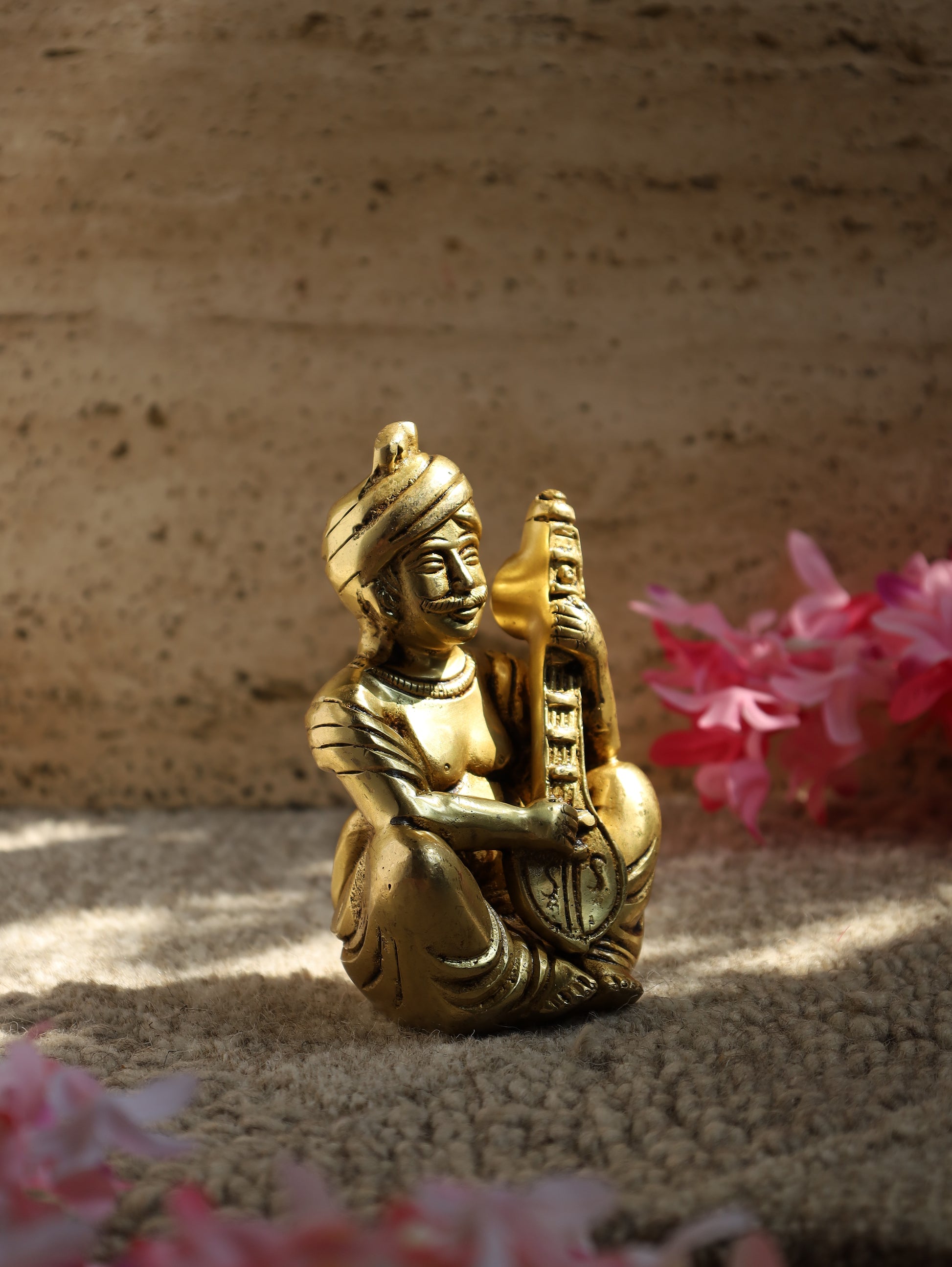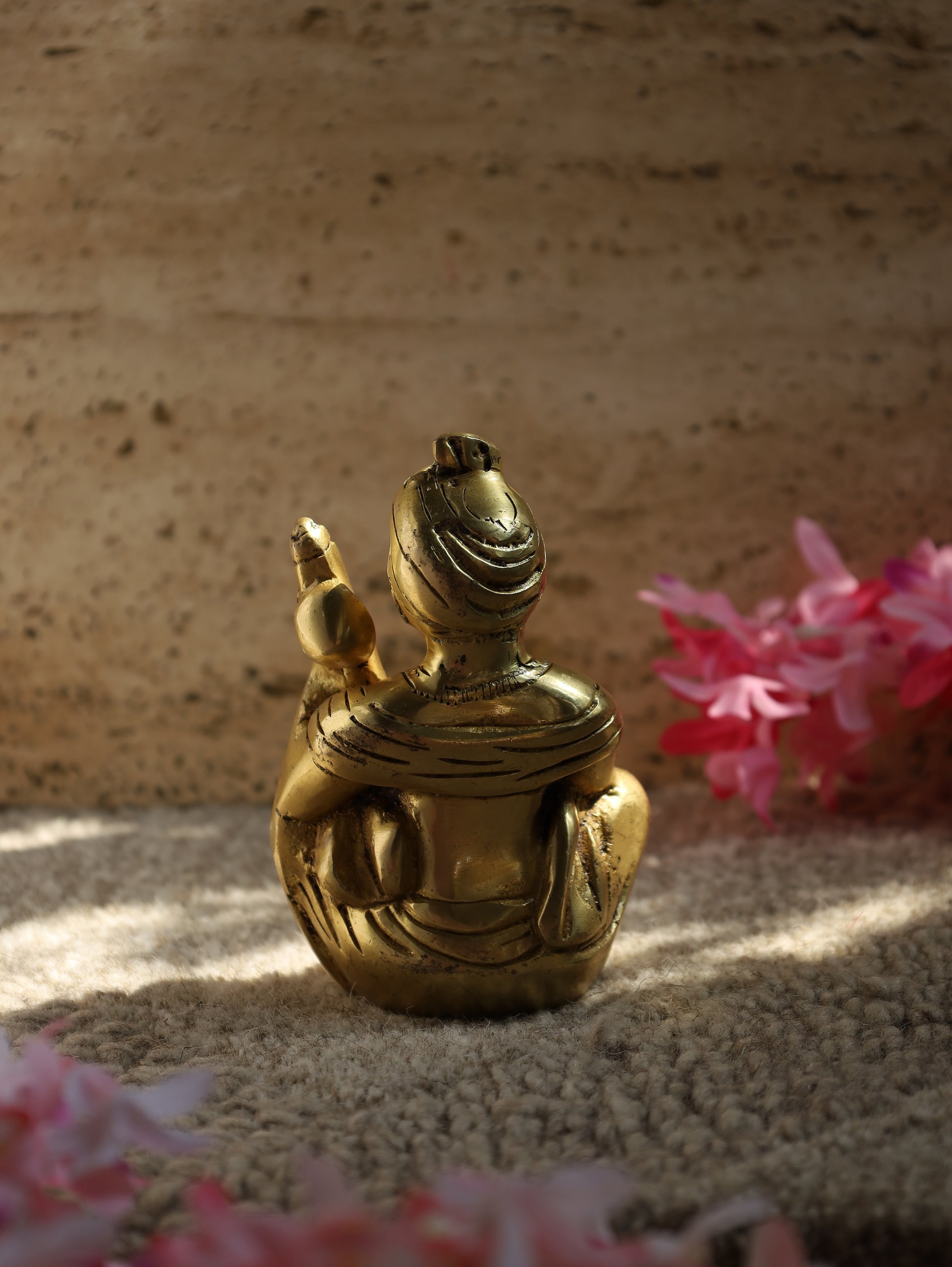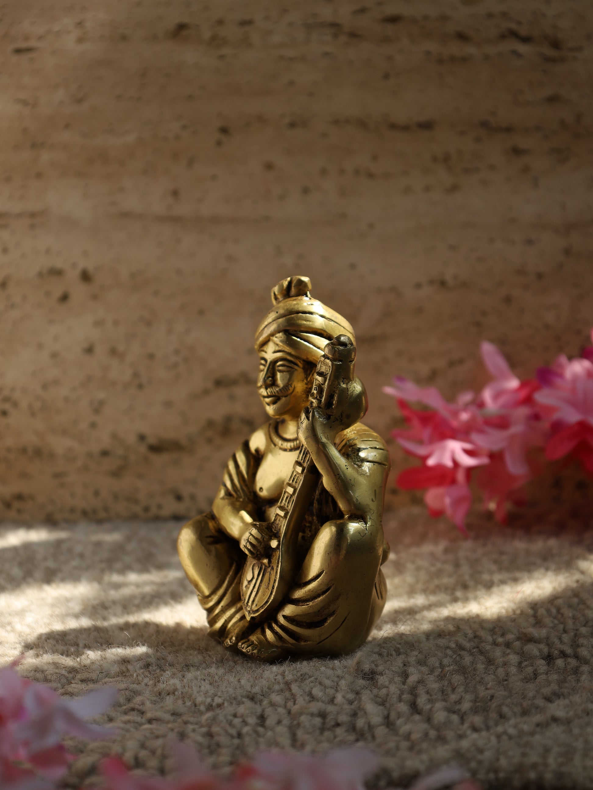 This exquisite brass idol portrays the revered saint and poet-saint Purandara Dasa in a meditative musical pose. Seated gracefully with a tambura, the figure radiates devotion, wisdom, and artistic spirit. Meticulously crafted, it’s a perfect choice for music lovers, spiritual seekers, and devotees alike. Ideal for home altars or cultural décor, this idol adds a touch of serenity and inspiration.