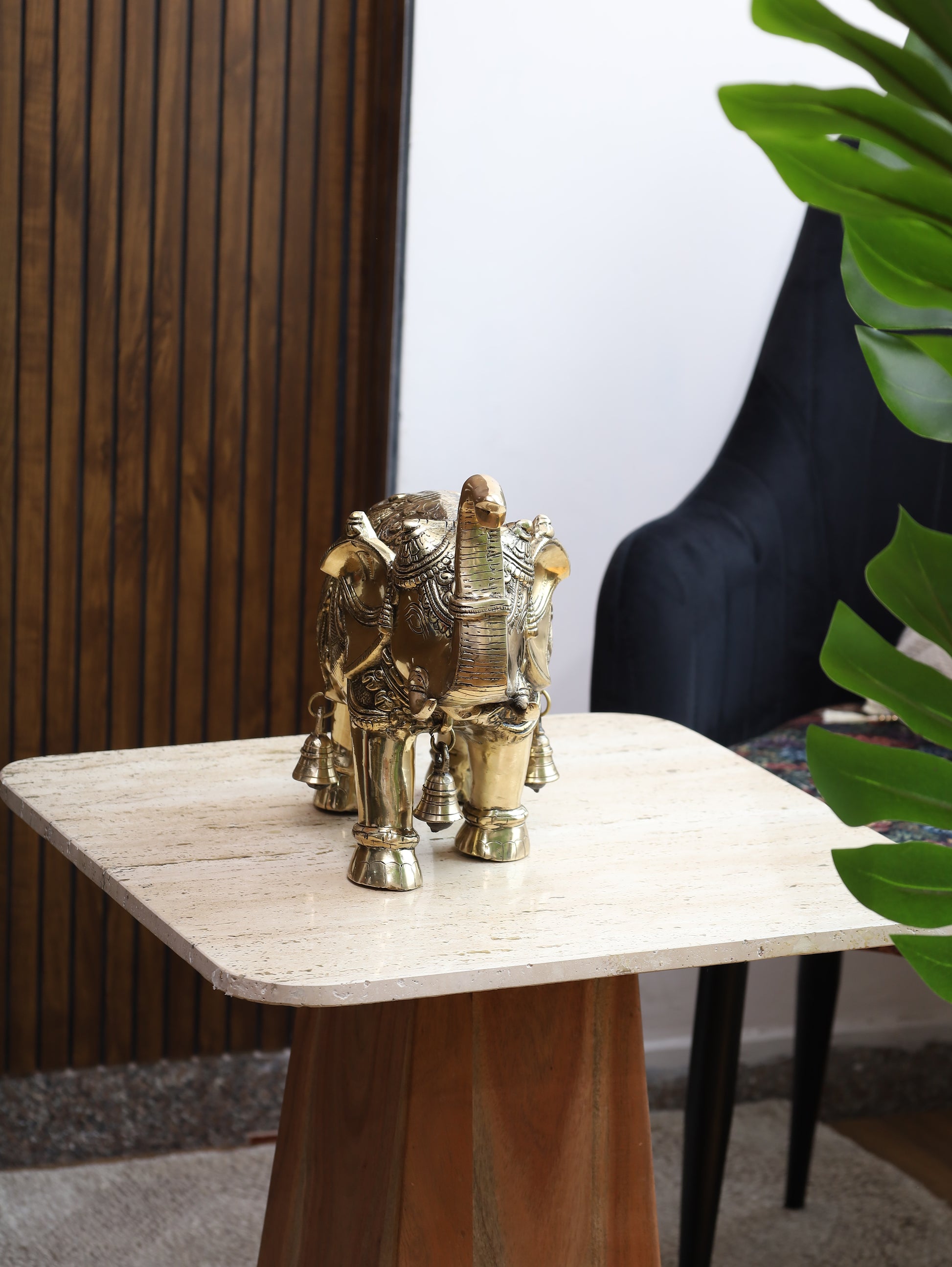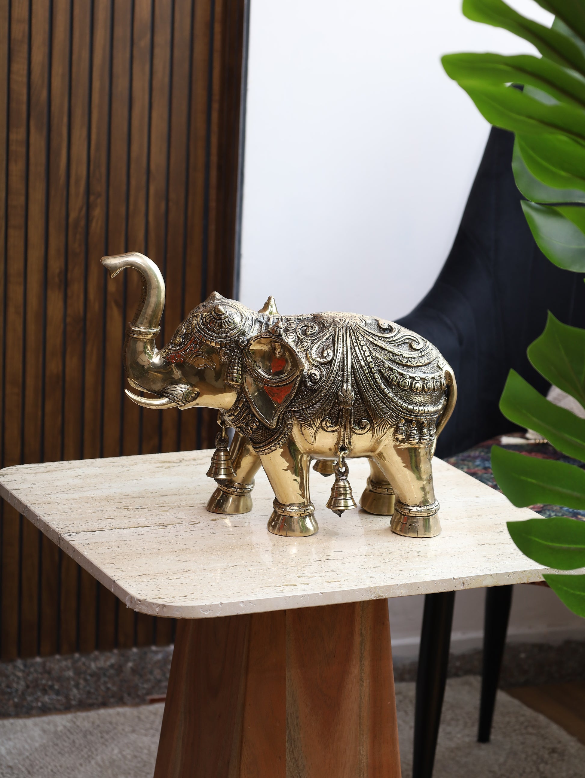 Add a touch of regality to your décor with this intricately crafted brass elephant statue, adorned with traditional carvings and fine detailing. Symbolizing strength, wisdom, and prosperity, it makes a perfect accent piece for living rooms, entryways, or office spaces. The polished gold and silver finish exudes elegance and cultural charm. A timeless collectible for lovers of Indian heritage and art.