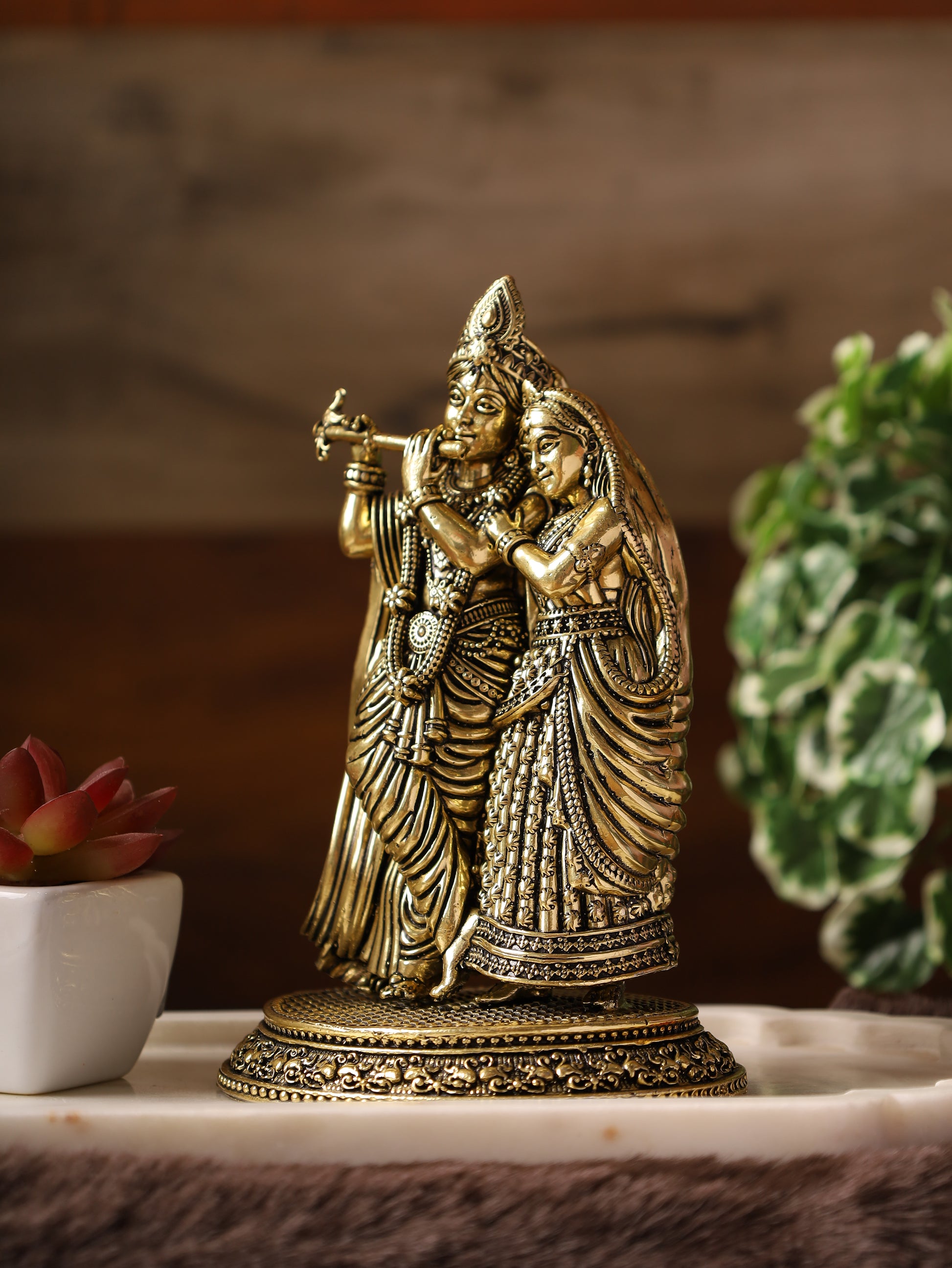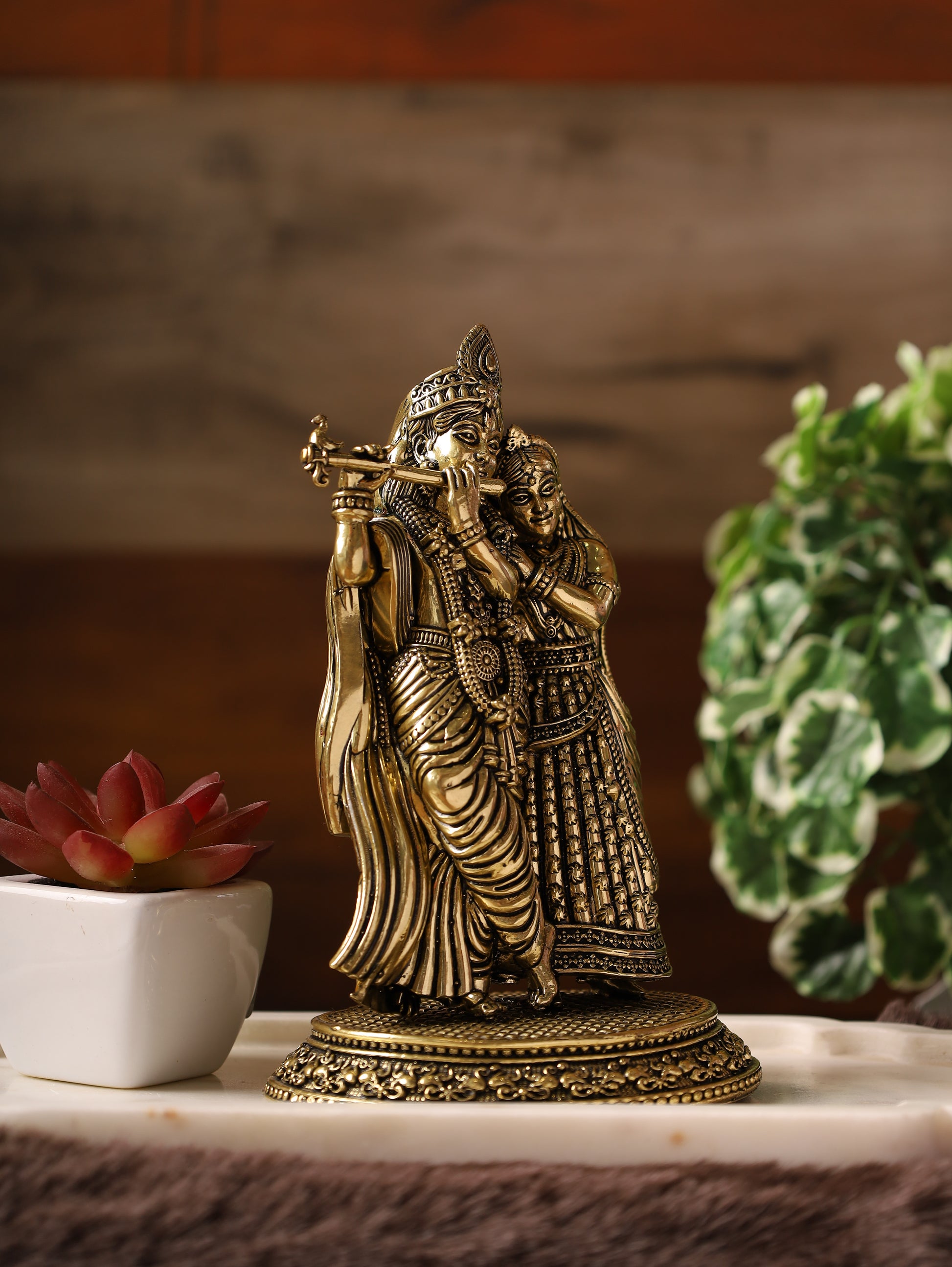 SuperFine Brass Radha-Krishna On pedestal 7''