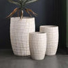 These elegant off-white vases feature a modern geometric grid pattern that adds texture and sophistication. Their sleek, cylindrical shape gives them a contemporary look perfect for any decor style. Ideal for indoor plants or floral arrangements, they blend effortlessly with minimalist and modern interiors. The neutral tone makes them versatile for living rooms, patios, or office spaces.